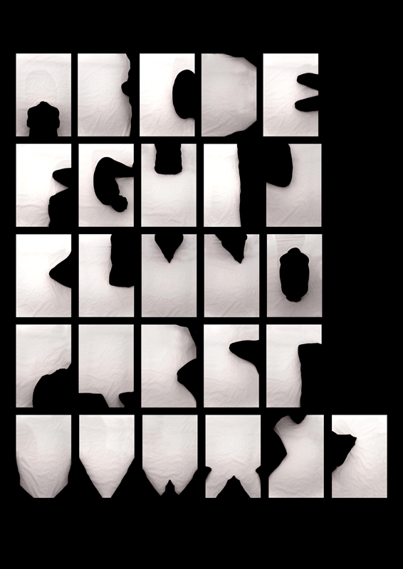 réalisée autour du corps et de ses possibilités. La forme humaine devient la contre-forme typographique donnant à voir la lettre.